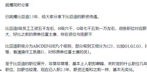 最近网络上可是炸开了锅,大家都在热议比亚迪的薪资情况呢!这不,最新消息一出来,简直让人眼睛一亮,咱们一起来探个究竟吧!